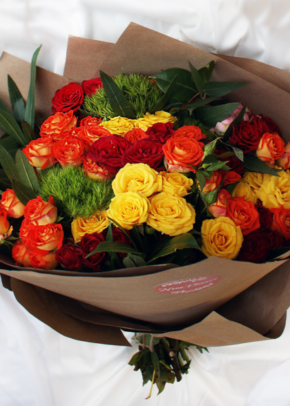 შემადგენლობა: სხვადასხვა ფერის სპრეი-ვარდები მწვანე დეკორი ერთმაგი შეფუთვა კომპოზიციაში შესაძლებელია შეიცვალოს ყვავილის ტიპი, ფერი და შეფუთვა. თუ გსურთ მიიღოთ დეტალური ინფორმაცია, გთხოვთ, დაგვიკავშირდეთ ნომერზე:…